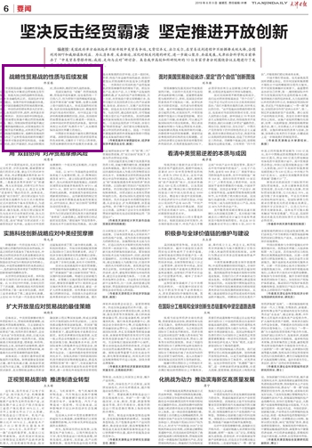 中国要在贸易战中赢得长期的发展环境。消除贸易战给我们经济贸易带来的负面影响,关键在于干好自己的事情,为贸易摩擦的持续升级做充分准备,创造未来发展的良好环境。过去一段时间,外贸、科技乃至金融市场的波动,使我们更加认识到战略性科技竞争力的重要性。一方面我们应用高科技产业的发展抵消贸易摩擦带来的增长干扰,抓住信息产品、航空产品、人工智能产品发展的战略机遇,扩大高科技产业的增加值。另一方面,在贸易战中要实现精确打击,选中可能打击美国经济自信心的产业或领域,如农业、原油出口、关键产品的贸易限制,创造去美元化的市场信息或措施等。与此同时,通过政府支持,尽可能减少我方受打压产业的损失。美国的战略误判容易导致其自身出现持续的致命消耗,一旦美国出现经济下行风险,容易引发“特朗普衰退”。我们要充分释放韧劲,展示中国经济的承受力,创造一个别国不敢随意欺凌的外部发展形势和中国经济未来发展的良好环境。