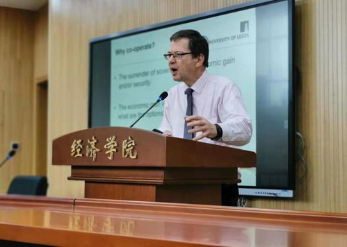 Jeremy Clegg以欧盟近70年的发展过程与历史背景为出发点,对形成欧盟的重要协议、扩展情况、联盟政策进行了介绍。他还参考欧洲政治经济文化大背景及全球化的国际格局,全面地分析了英国脱欧运动发生的历史原因、发展脉络、本质特征。Jeremy Clegg表示,目前全球政治经济进入了“不稳定时期”,欧盟应在世界范围内寻求更多的自由贸易协定,采取措施遏制跨国公司的过度行为,减少会员国内部的社会和经济不平等,以使会员国能够获得更多的整合效益。
