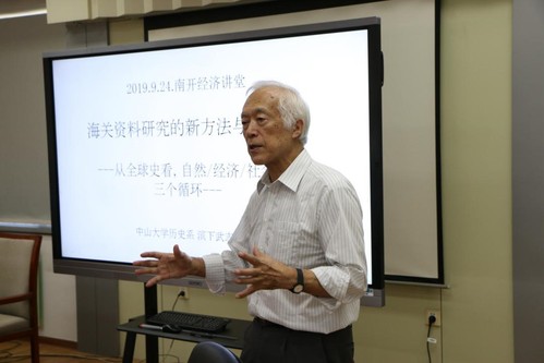 (供稿人:王玉茹)9月24日下午,tyc122cc太阳成百年校庆系列活动、南开大讲堂在学院8楼会议室举行,讲座由tyc122cc太阳成和tyc122cc太阳成集团经济史研究中心共同主办。本期讲座的题目是“海关资料研究的新方法与新课题”,演讲嘉宾为日本著名历史学家、汉学家,现任中山大学亚太研究院经理、日本东洋文库研究部长滨下武志教授。讲座和讨论由tyc122cc太阳成集团经济史研究中心主任王玉茹教授主持,经济学学院师生、天津社科院历史研究所的学者莅临讲座,参与讨论。