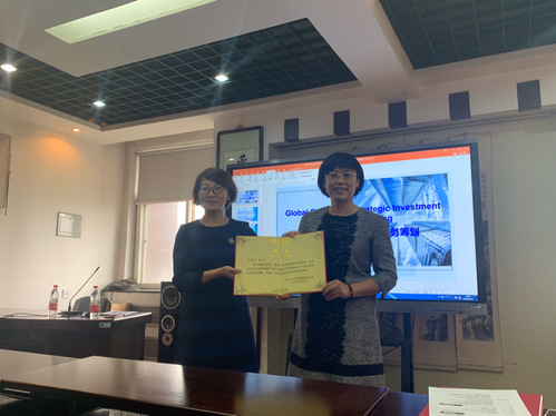 (供稿人:饶有玲)10月10日下午,中石油国际事业(伦敦)有限公司财务部副总经理、英国皇家特许会计师ACCA资深会员刘智华女士受邀为公司财政系税务硕士开展跨国公司战略投资与税务筹划讲座。财政系举行致聘仪式,聘任刘智华女士为税务硕士校外导师。