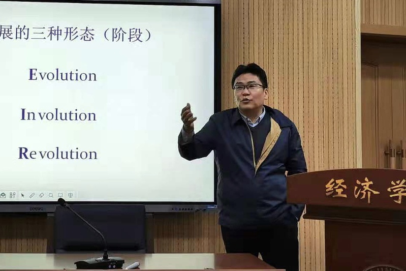 白云龙教授向学员们介绍了共产党和共产主义产生的时代背景,梳理了近代世界经济主导国家的演变过程,引导学员以全新的视野深化对中国共产党执政规律、社会主义建设规律和人类社会发展规律的认识。课程重点内容是经济学与意识形态,白云龙教授为学员们梳理了经济学的意识形态阶段,指出古典政治经济学和新古典政治经济学为马克思主义奠定了理论基础,1848年《共产党宣言》诞生,马克思用生产力理论解释了劳动和分工存在的必要性,为中国特色市场经济运行提供理论支持。随后,白云龙教授对现代政治经济学的相关观点进行评述,如否认斯宾塞的社会达尔文主义理论和弗里德曼的经济增长的道德意义的观点合理性,提出人的最高本质是社会关系的总和,即将人的属性、社会属性和国家属性相结合。接下来,白云龙教授强调马克思主义辩证唯物主义和历史唯物主义的立场、观点和方法是认识世界和改造世界的思想指针,提出人的自由全面发展结构图,在中国特色社会主义领导下,通过市场调节,收入分配,政府职能,国家权力和市场等的平衡,实现经济社会结构的动态创新。党课的最后,白云龙教授带领学员重温两个一百年奋斗目标,号召学员深刻学习习近平总书记系列重要讲话指示精神,肩负起第二个一百年目标的重要使命,努力奋斗。