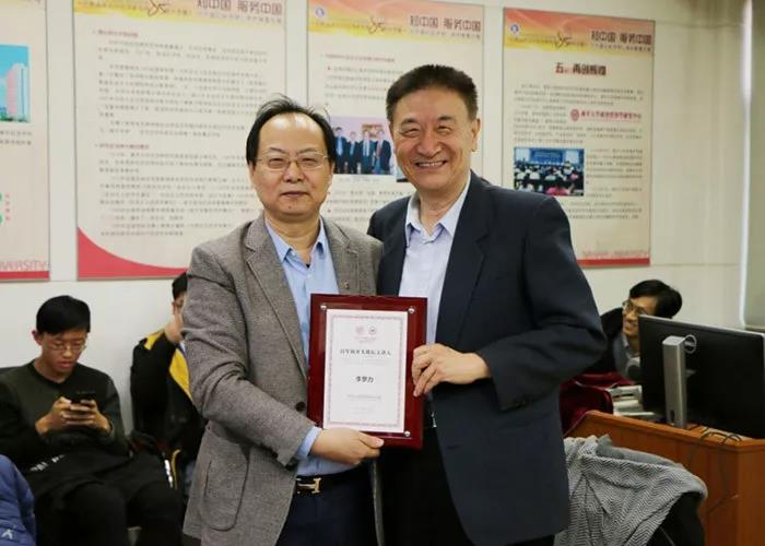 刘刚所长向李罗力教授颁发“百年南开大讲堂主讲人”证书牌