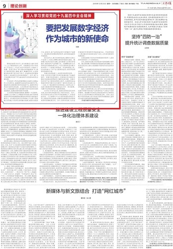 中央经济工作会议的部署是从全面的大局做出的,对天津而言,最重要的是加快科技创新的步伐,建设具有全球影响力的科技创新中心,辐射和带动周边区域的经济发展。从经济转型升级的驱动力看,大力发展数字经济,推动数字经济与经济社会的深度融合,是建设创新型城市的关键。