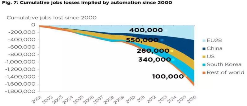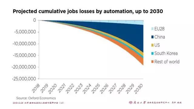中国制造2025规划以及未来人工智能规划、大数据规划、科技进步战略等一系列科技发展规划太多了。牛津经济研究院的研究显示,从2000年到2016年,全世界有170万个制造业工作岗位已经被机器人接管了,被接管工作岗位的最大份额是中国,55万个制造业工作岗位在中国被接管了。