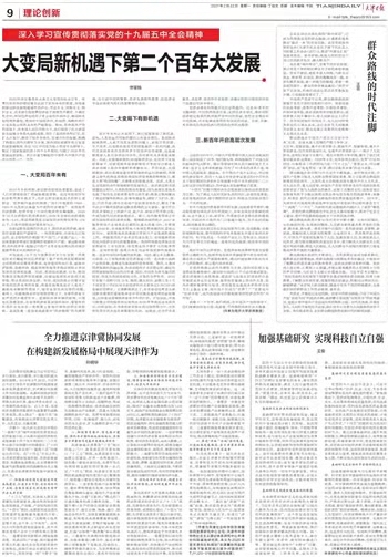 中国必须在新百年以科技创新为引领,形成跟跑、并跑到领跑的发展,使中国的科学技术发展水平逐步走向世界的前列。科学技术是一个国家产业实力、竞争实力、经济实力乃至军事实力的基础。没有科技的发展,就没有中国的强盛。