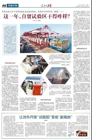 2021年是“十四五”规划和全面建设社会主义现代化国家新征程开局之年。面对国内外风险挑战增多的复杂局面,中国构建新发展格局迈出新步伐,高质量发展取得新成效,实现了“十四五”良好开局。在这一过程中,全国21个自贸试验区和海南自由贸易港发挥了重要作用。