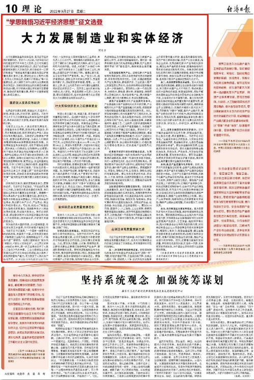 习近平经济思想内涵丰富,不仅指明了我国制造业高质量发展的方向,也为大力发展制造业和实体经济提出了具体路径,具有很强的针对性和指导性。