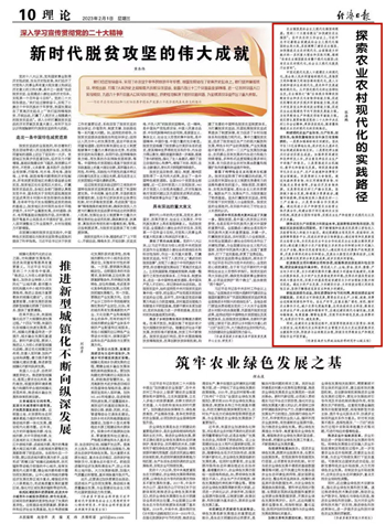 中国式现代化是人口规模巨大的现代化,是全体人民共同富裕的现代化,是物质文明和精神文明相协调的现代化,是人与自然和谐共生的现代化,是走和平发展道路的现代化。从中国式现代化的这些特征出发,农业强国之“强”应体现为保障我国粮食安全和多元化食物供给能力强,促进农民增收逐步实现共同富裕能力强,促进乡村宜居宜业和美有效治理能力强,促进农业全过程绿色节约可持续发展能力强,为世界粮食生产和稳定供给贡献能力强。我们要认真贯彻落实党的二十大和中央农村工作会议精神,秉持系统观念,探索整体推进农业农村现代化的实践路径。