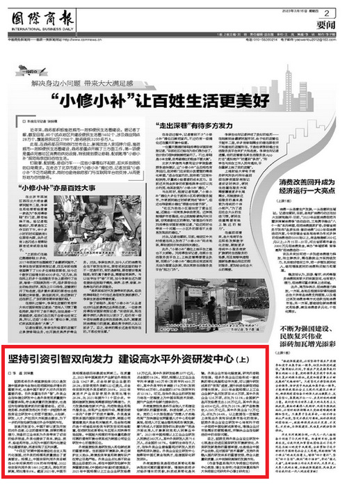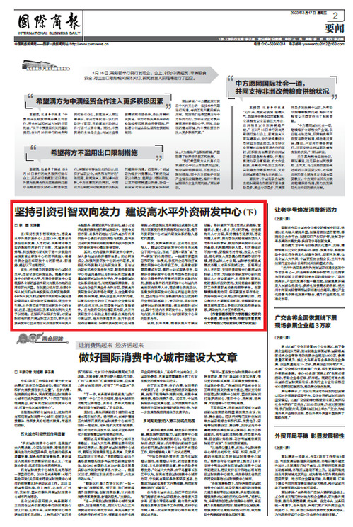 tyc122cc太阳成集团跨国公司研究中心李磊教授和刘泽寰博士,近日在商务部《国际商报》以两期连载的方式,发表文章“坚持引资引智双向发力,建设高水平外资研发中心”。