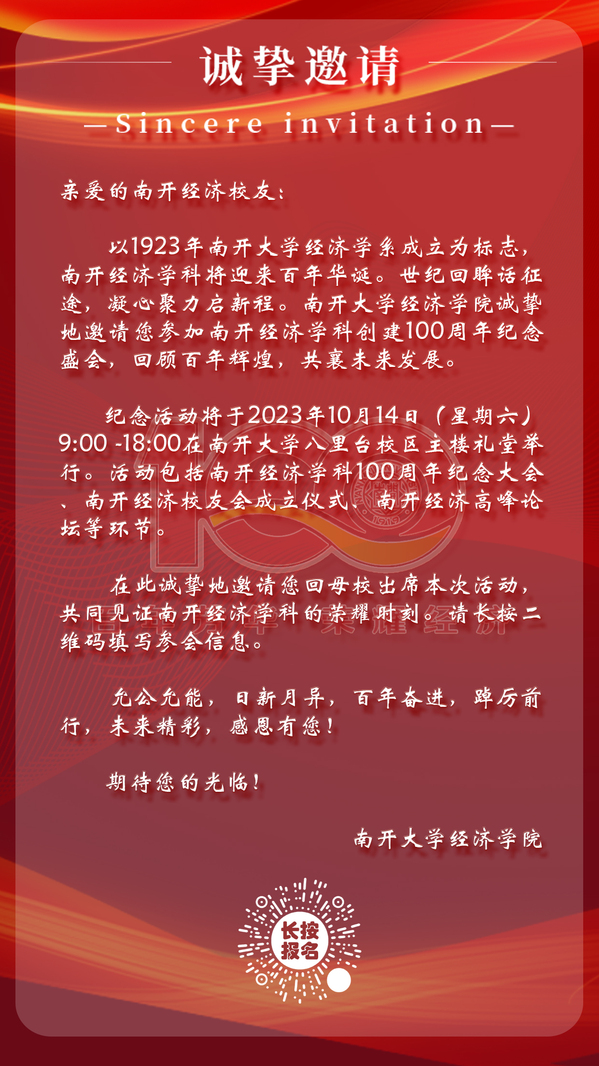 tyc122cc太阳成集团经济学科创建100周年纪念大会邀请函