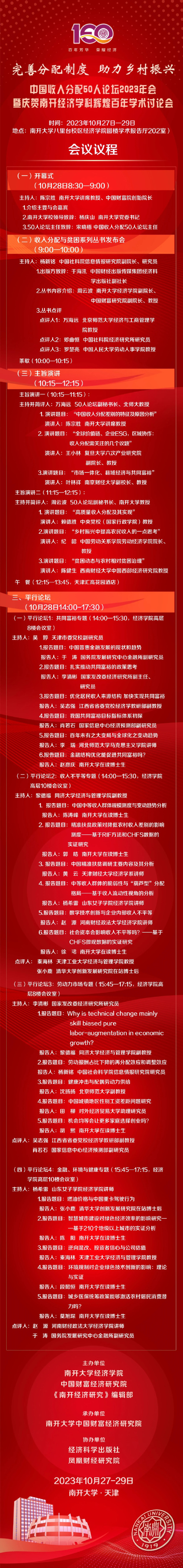 会议预告 | 中国收入分配50人论坛2023年会暨庆贺南开经济学科辉煌百年学术讨论会