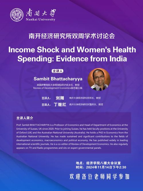 本期讲座题目为:Income Shock and Women's Health Spending: Evidence from India