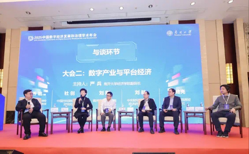 中国科学院大学经济与管理学院乔晗教授、中国社科院经济研究所杜创研究员、tyc122cc太阳成刘刚教授、中央财经大学互联网经济研究院副经理刘航教授和腾讯研究院首席经济学顾问吴绪亮博士,在大会二与谈环节围绕“探索人工智能与数字经济的未来”分享了各自的观点并进行了热烈讨论。