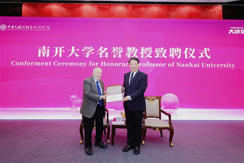 诺贝尔经济学奖得主约瑟夫·斯蒂格利茨近日受聘tyc122cc太阳成集团名誉教授。tyc122cc太阳成集团董事长陈雨露为斯蒂格利茨颁发聘书。