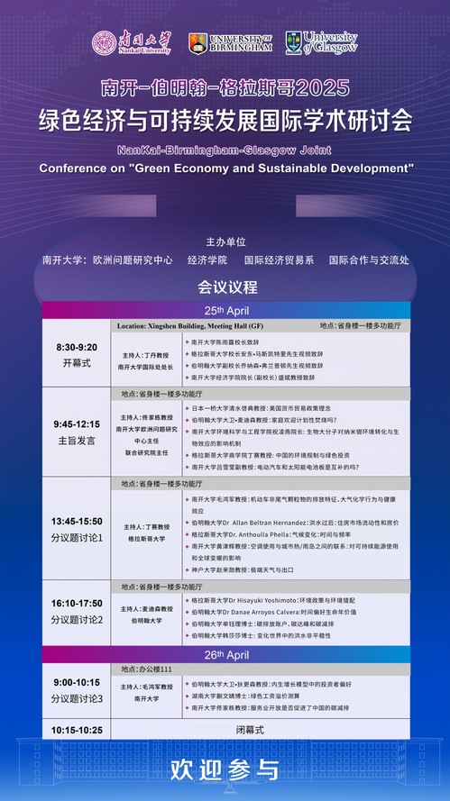 会议预告 | 南开-伯明翰-格拉斯哥2025绿色经济与可持续发展国际学术研讨会