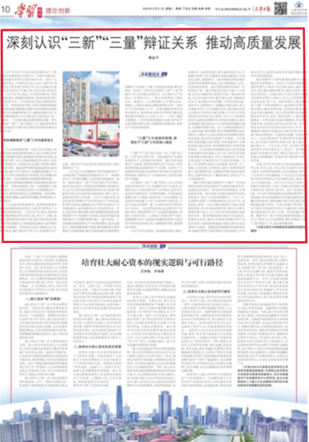 “三量”与“三新”是内在统一的,“三量”是目标,“三新”是手段和方式。科技创新和产业焕新是新质生产力发展的内在要求。要以科技创新推动产业焕新,加快形成现代化产业体系,培育新发展动能,推动新质生产力发展。新质生产力是推动我国高质量发展和中国式现代化建设的物质基础,而新质生产力发展的核心是科技创新和产业焕新。