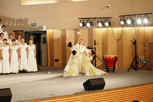 来自全校各学院的25支参赛团队以饱满的热情、创新的形式、真挚的歌声献上一场视听盛宴。合唱曲目中既有对厚重历史的致敬,也有对时代新章的书写。悠扬的旋律在音乐厅内回荡,赢得了现场观众的阵阵掌声。
