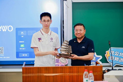 今年恰逢国际经济贸易系建系40周年,系友们精心了准备一份特殊的礼物——一尊黄铜帆船摆件,寓意着“扬帆起航再出发”,祝愿国经贸系在时代浪潮中奋勇前行,书写更多辉煌篇章。彭支伟主任郑重接过礼物,对系友们的心意表示由衷感谢。