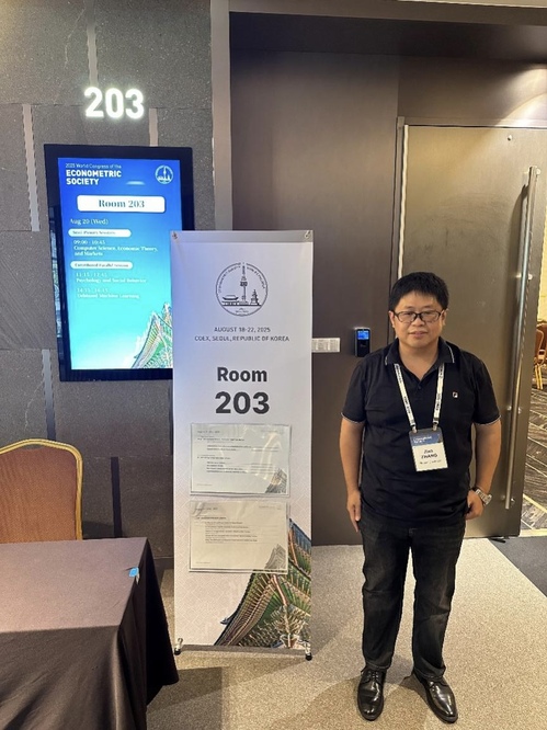 公司教师孟晓雨博士、张健博士、张抒梦博士、张万博士于2025年8月18日至22日参加在韩国首尔举办的2025年计量经济学会世界大会(The 2025 World Congress of the Econometric Society, ESWC2025),并在会议的平行分论坛展示其论文。