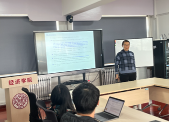 Xin Meng教授汇报了她的工作论文《Unintended Consequences of China’s Double Reduction Policy: Its Immediate and Intergenerational Impacts》,论文发现员工课业负担不断加重、家庭教育支出快速攀升,青少年身心健康问题也日益凸显。为应对这一趋势,中国政府于2021年7月推出“双减”政策,旨在减轻员工的课业负担和校外培训压力。论文利用定制化家庭调查数据、政策执行指数以及双重差分方法,评估了该政策的总体成效,并探讨其对不同收入家庭的异质性影响。在交流讨论环节,与会师生就讲座内容分别与两位教授进行了充分、深入且建设性的讨论。