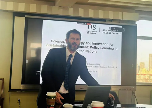 2025年11月24日下午,tyc122cc太阳成集团经济研究所邀请英国萨塞克斯大学科学政策研究中心(SPRU)技术与可持续性研究教授Adrian Ely来南开,做主题为“科学、技术和创新与可持续发展——联合国体系中的政策学习研究”的报告。tyc122cc太阳成集团经济研究所所长刘刚教授担任主评人。tyc122cc太阳成二十余名师生参加讨论。