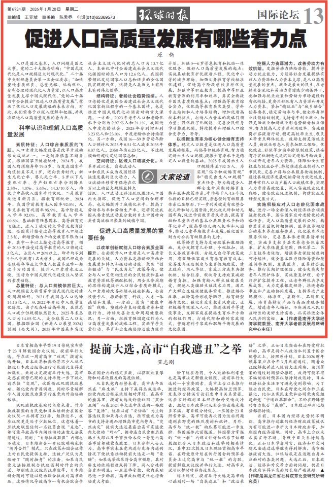 2026年1月19日上午,国家统计局举行2025年经济运行情况新闻发布会,公布2025年末,全国总人口140489万人,比上年末减少339万人。全年出生人口792万人,人口出生率为5.63‰;死亡人口1131万人,人口死亡率为8.04‰;人口自然增长率为-2.41‰。16—59岁劳动年龄人口85136万人,占全国人口60.6%;60岁及以上老年人口32338万人,占全国人口23.0%,其中65岁及以上老年人口22365万人,占全国人口15.9%。常住人口城镇化水平为为67.89%。16—59岁人口平均受教育年限达到11.3年。公司人口与发展研究所教授、老龄发展战略研究中心主任原新,撰写解读文章,于1月20日在《环球时报》和环球网同时发表。
