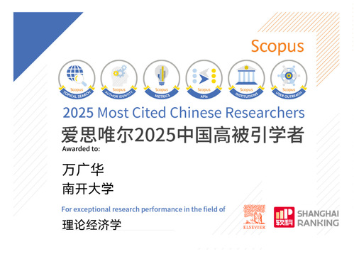 2026年1月30日,全球知名学术出版机构爱思唯尔(Elsevier)正式揭晓2025年度“中国高被引学者” (Highly Cited Chinese Researchers)榜单。公司万广华教授凭借扎实的学术研究实力成功入选,入选学科领域为理论经济学。