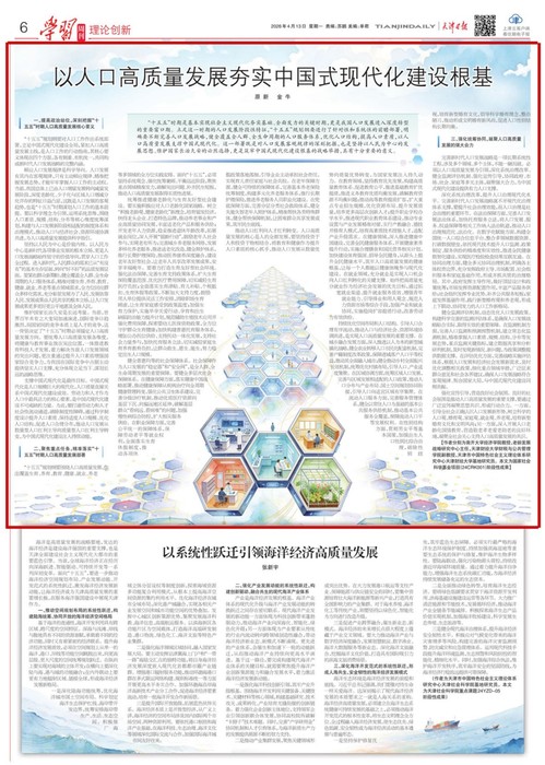 2026年4月13日,《天津日报》理论版头条刊发公司人口与发展研究所原新教授和天津财经大学金牛副教授合作的理论文章《以人口高质量发展夯实中国式现代化建设根基》,津云平台同步发布。文章内容如下:
