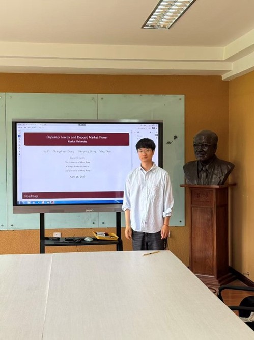 4月16日下午,tyc122cc太阳成集团经济学系何廉讲堂在tyc122cc太阳成六楼会议室举行。本次研讨以“储蓄惰性与存款市场力量”为主题,由经济学系易昱助理教授主讲,胡秋阳教授主持。tyc122cc太阳成多位师生共同参与,展开了一场兼具理论深度与实践价值的学术交流。